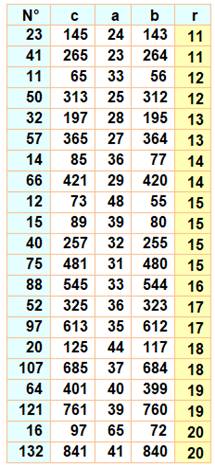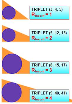 Table des triplets avec rayon du cercle inscrit de 1 à 20 Le