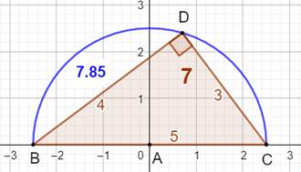 la position du point D, cette longueur varie de 5 à 5√2 = 7,07… Encore loin de 7, 85 ! |