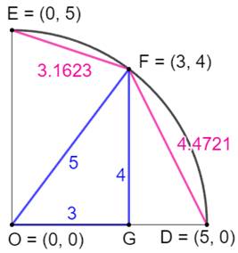 point F de coordonnées (3, 4) pour former le triangle rectangle OFG (3, 4,
