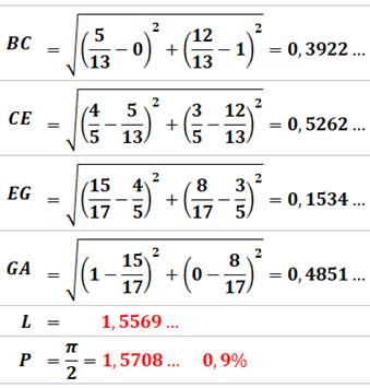 longueur des deux cordes (7) est une approximation par défaut du périmètre du