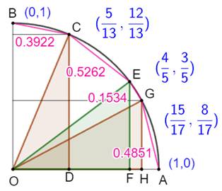 place le triplet (3, 4, 5) qui devient (3/5, 4/5, 1). On