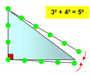 Le triangle rectangle le plus célèbre 3² + 4² = 5² 9 + 16 = 25 Le triangle du jardinier (ou du maçon ou de l'arpenteur)