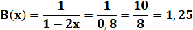 1, pour que la suite converge : B(x) = 1 / (1 - 2x)