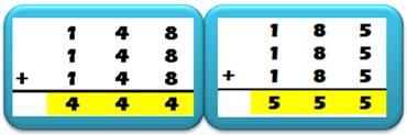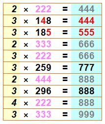 somme. Certaines sont triviales comme 2 × 222 = 444. |
