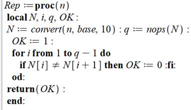 nombre n est un repdigit et 0 sinon. Le nombre n est converti en une liste N (effet de
