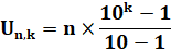 = k (10n + 10n-1 +…+ 10 + 1) Notation U1,3 = 111 U5,6 = 555 555 Forme