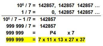 Curiosité Facteurs: 999 999 = 1 x 33 x 7 x