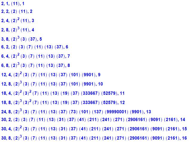 Exemple: 3, 8 => 888 = 23 x 3 x 37.