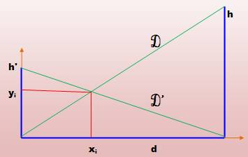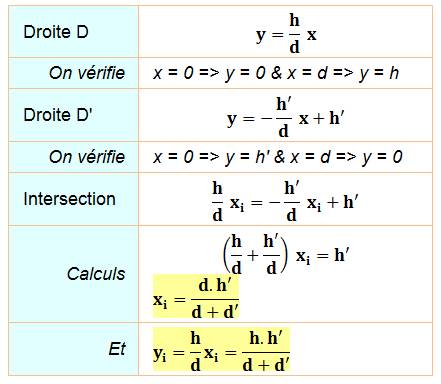 échelles et calcul de x pour une valeur commune de y (intersection des