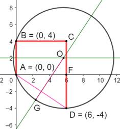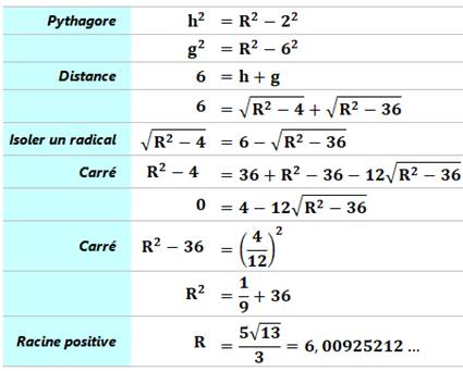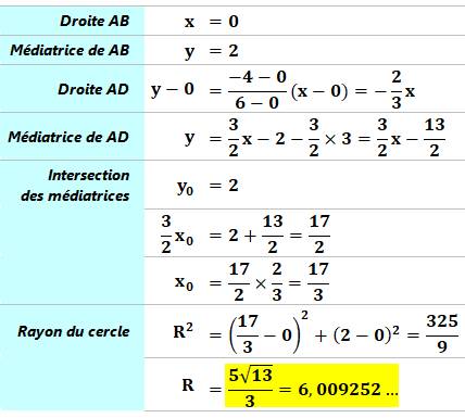 rayon, égal à la distance OA, sera calculé avec le théorème