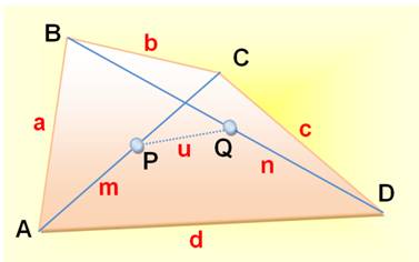 b² + c² + d² = m² + n² + 4u² Précisions: AC = m et BD =