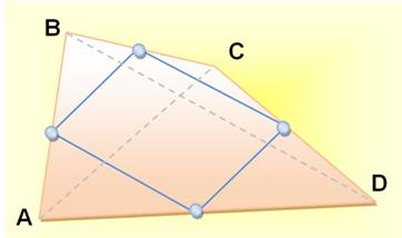 milieux des côtés: E, F, G et H. Le quadrilatère EFGH est un parallélogramme.