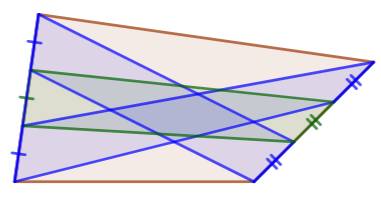 de chacun des trois quadrilatères (bleus et vert) est égale à un tiers des