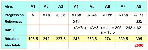 et A8 = 305 m² Valeurs des autres? Principe