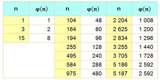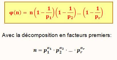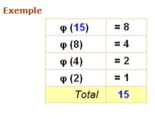 Fonction PHI d'EULER ou indicatrice d'EULER ou totient d'EULER Calculs / Opérations Phi (n) est la quantité de