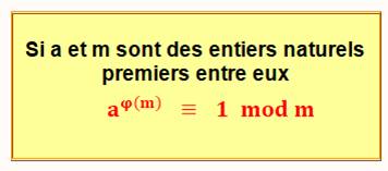 Théorème d'Euler ou de Fermat-Euler C'est une généralisation du petit théorème de