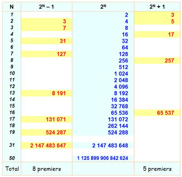 + 35 Seuls cas connus d'une puissance de 2 égale
