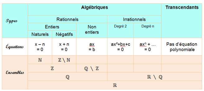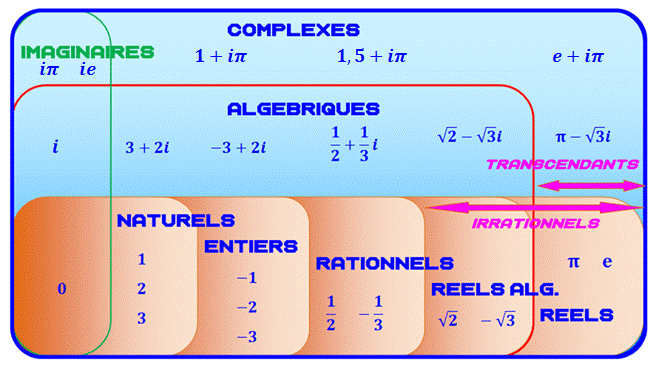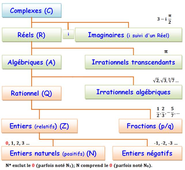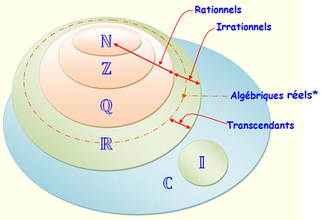 *Note: il existe aussi des nombres algébriques complexes. Voir Diagramme ci-dessous. Autre