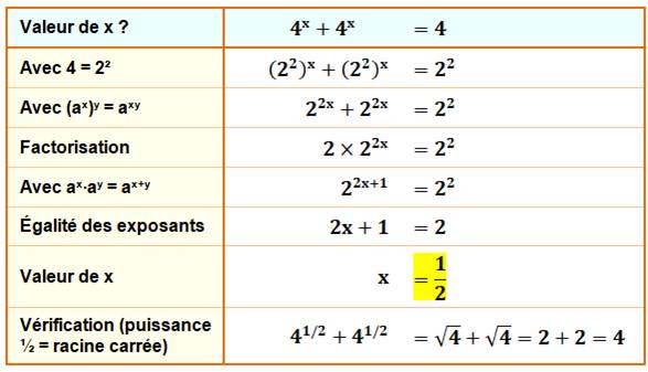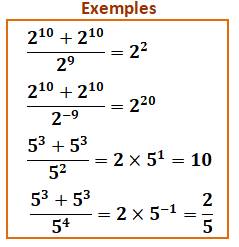 Sommaire de cette page >>> Pourcentage >>> Sommation >>> Avec des radicaux >>> Différence de puissances >>> Inconnue en exposant >>> Système d'équations |