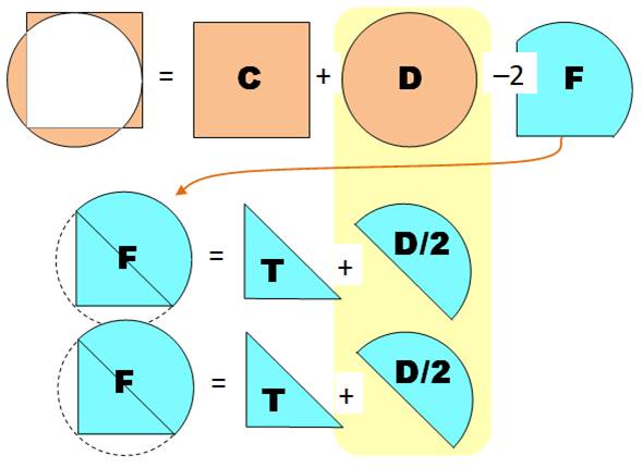 du disque auxquelles il faut retirer deux fois la zone centrale (bleue). Le dessin ci-dessous illustre le principe de