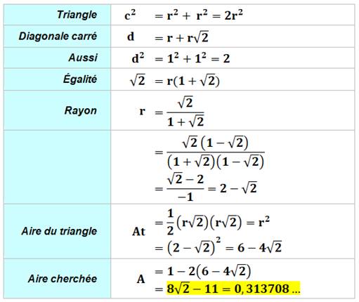 inscrit dans le cercle. Le calcul des aires A et B sont alors simples à