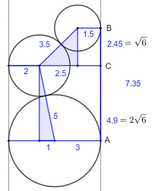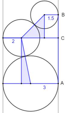 cercles de rayon: 3, 2 et 3/2. Tangents