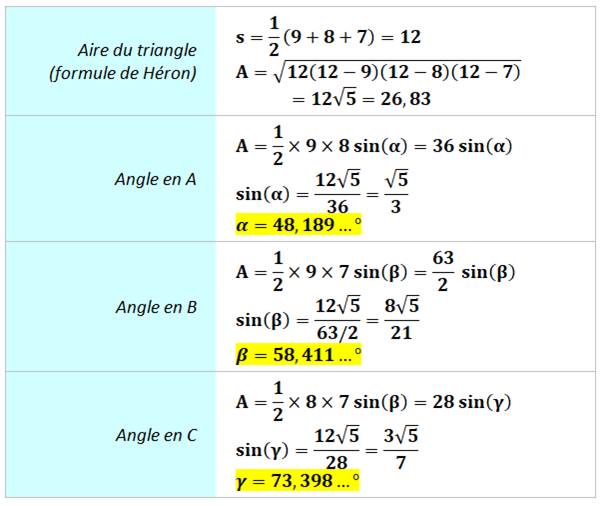 Sommaire de cette page >>> Valeurs des angles >>> Construction de la figure |