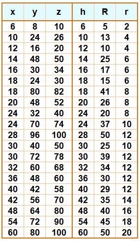 Formules Les mesures des côtés sont x, y et z avec z