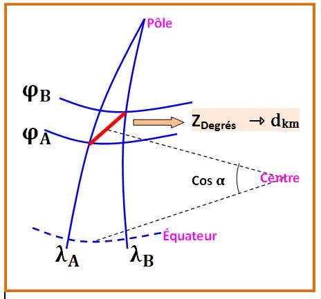 "degrés". Le facteur k rétablit l'échelle en kilomètre en