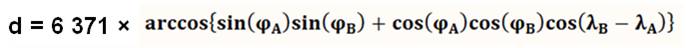 d = 6 371 × arccos(0,99993968…) = 69,97 km |