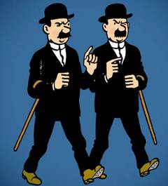 comme un T à l’envers Dans leur version originale en noir et blanc, les deux policiers sont d'abord appelés X33 et X33bis, et ce n'est qu'à partir du Sceptre d'Ottokar qu'ils prennent leur nom définitif. |