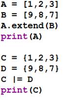M = [1, 2, 3] N = [4, 5] M.extend(N) print(M) |