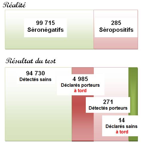 5% d'être véritablement séropositif et 95% de probabilité d'y échapper. Donc, ne pas s'affoler outre